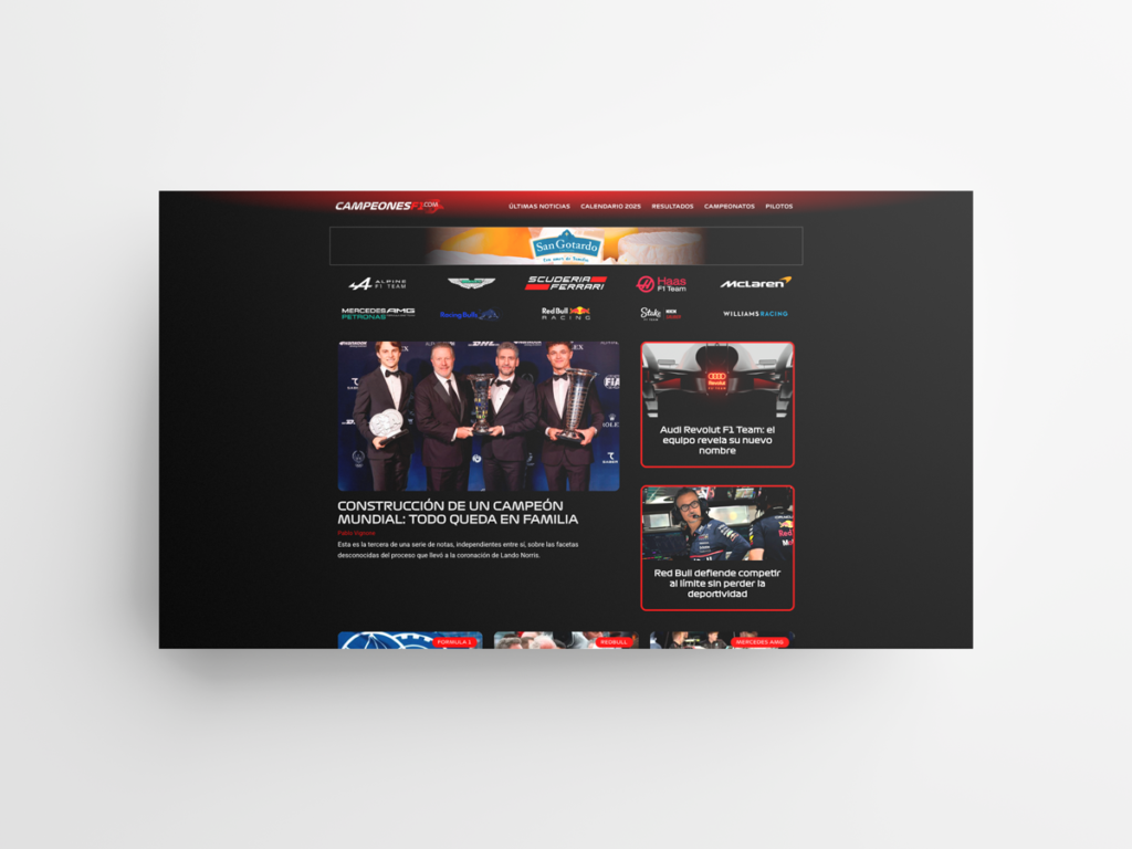 Portal internacional dedicado a la máxima categoría del automovilismo, con desarrollos basados en automatización y datos en tiempo real.